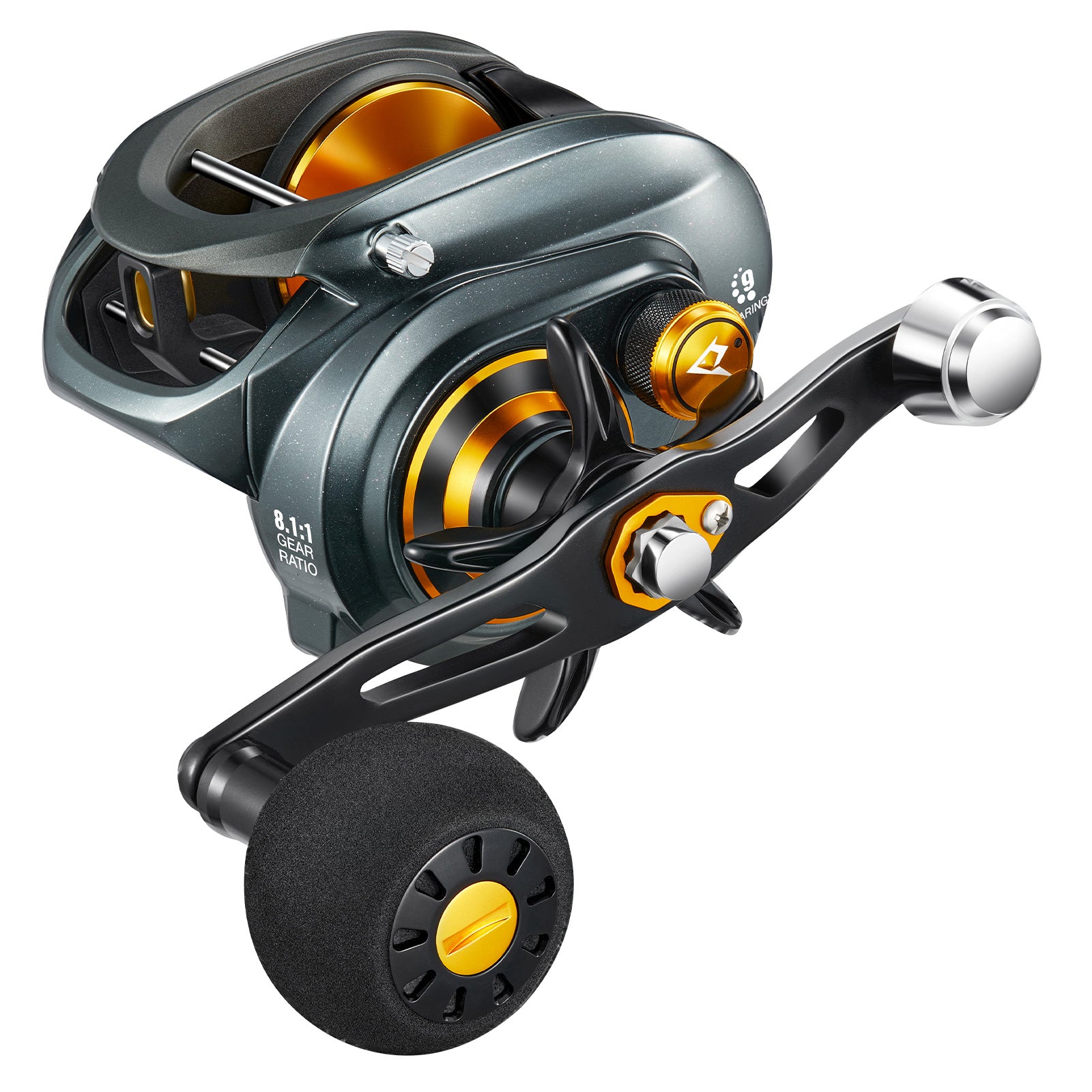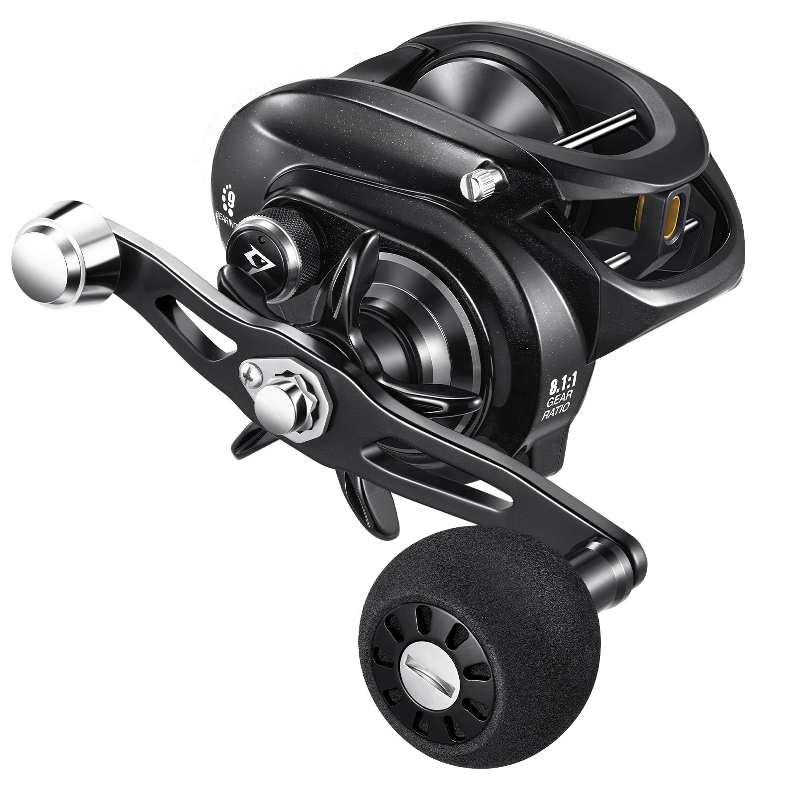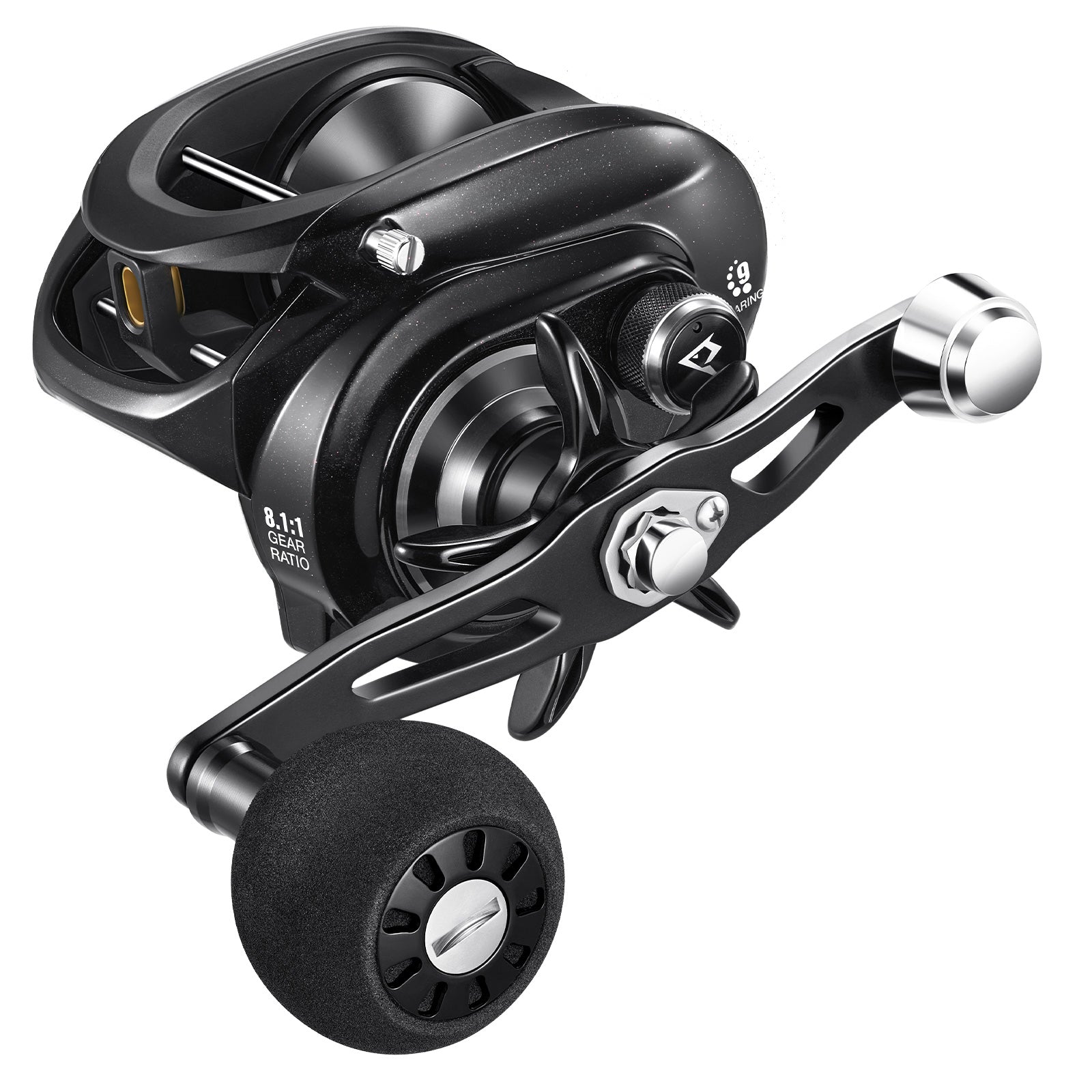 • Powerful Drag up to 38lbs: It utilizes a smooth "carbon fiber + stainless steel + anodized aluminum alloy" combination brake system, which increases the surface contact area and provides greater drag force. The 6.6 gear ratio offers a maximum drag force of 38lb, while the 8.1 gear ratio can achieve a maximum drag force of 35lb.