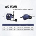 The Alijoz 400 is a heavy-duty, high-line capacity casting reel equipped with a Baitfeeder Switch. It features a magnetic brake system that enables long-distance casting and has a maximum Drag Power of 38 LBS making it suitable for saltwater scenarios where large bait and big fish are targeted.