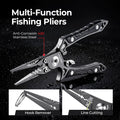 Fishing Pliers: Made of 420 stainless steel with a tungsten steel cutter that easily slices through braided lines. Corrosion-resistant coating protects the tool. Rubberized handle ensures a firm grip.